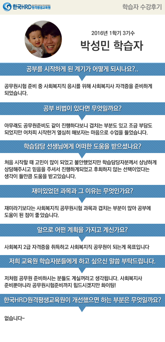 [박성민님] 공무원시험 준비 중 사회복지직 응시를 위해 사회복지사 자격증을...